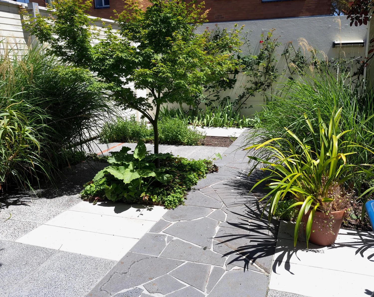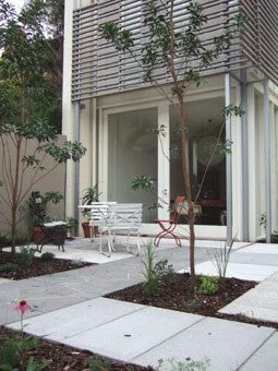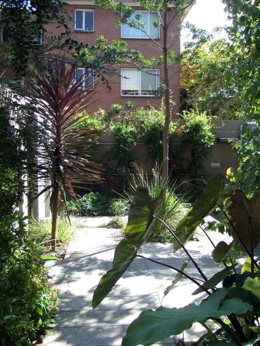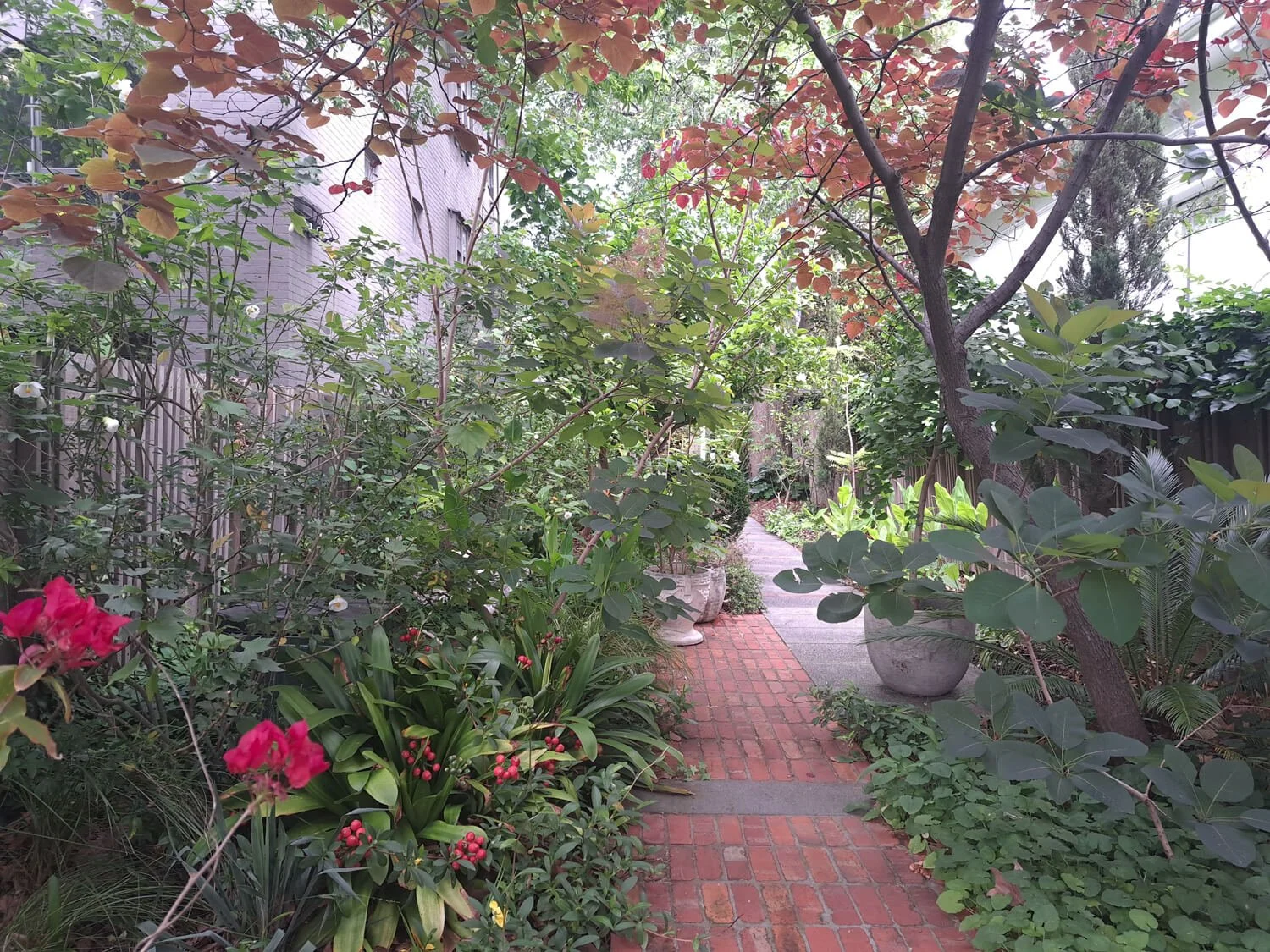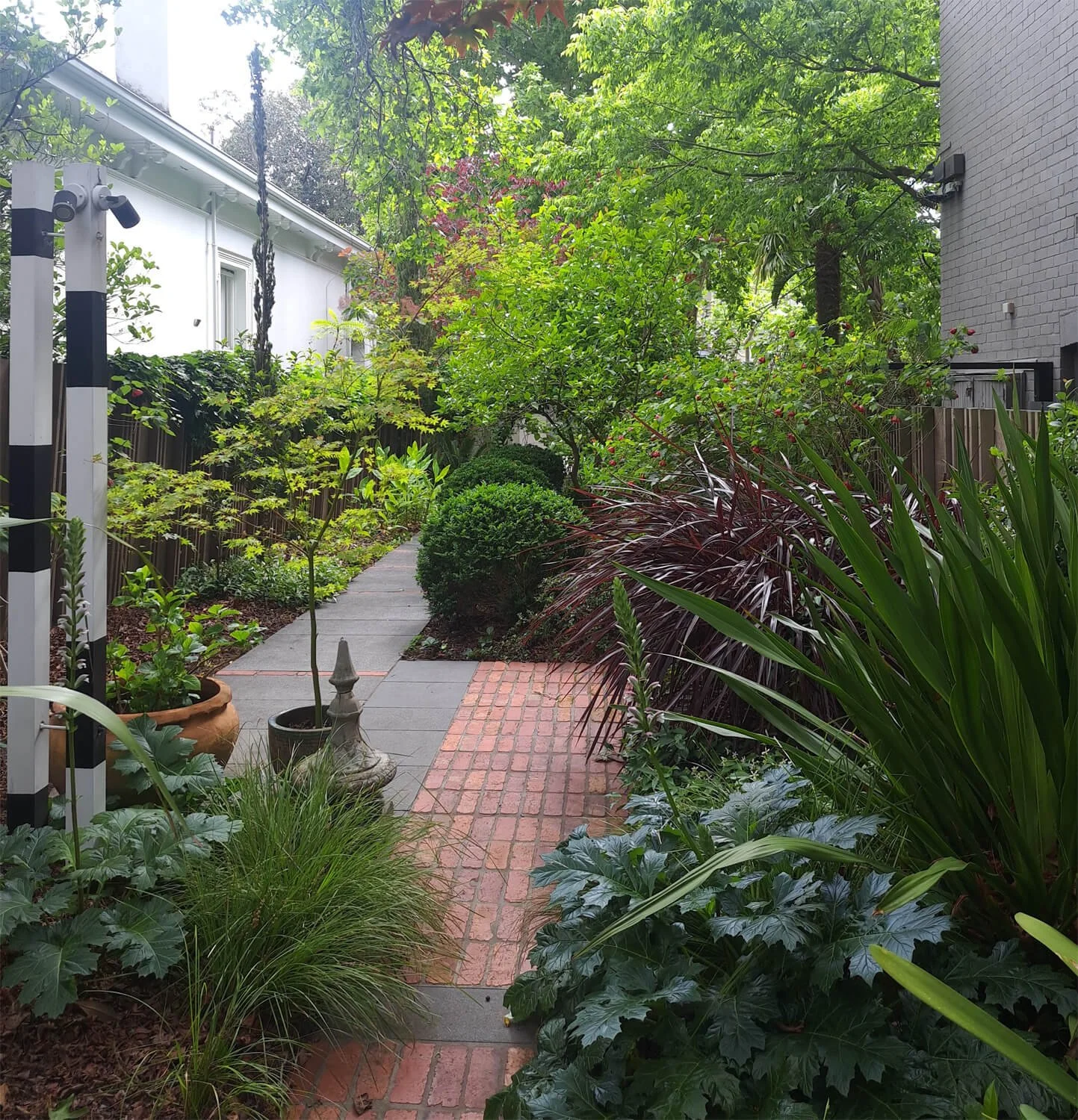 A singular St Kilda garden where the elegant house is set back 32 metres from the street on a site only 5.5 metres wide.