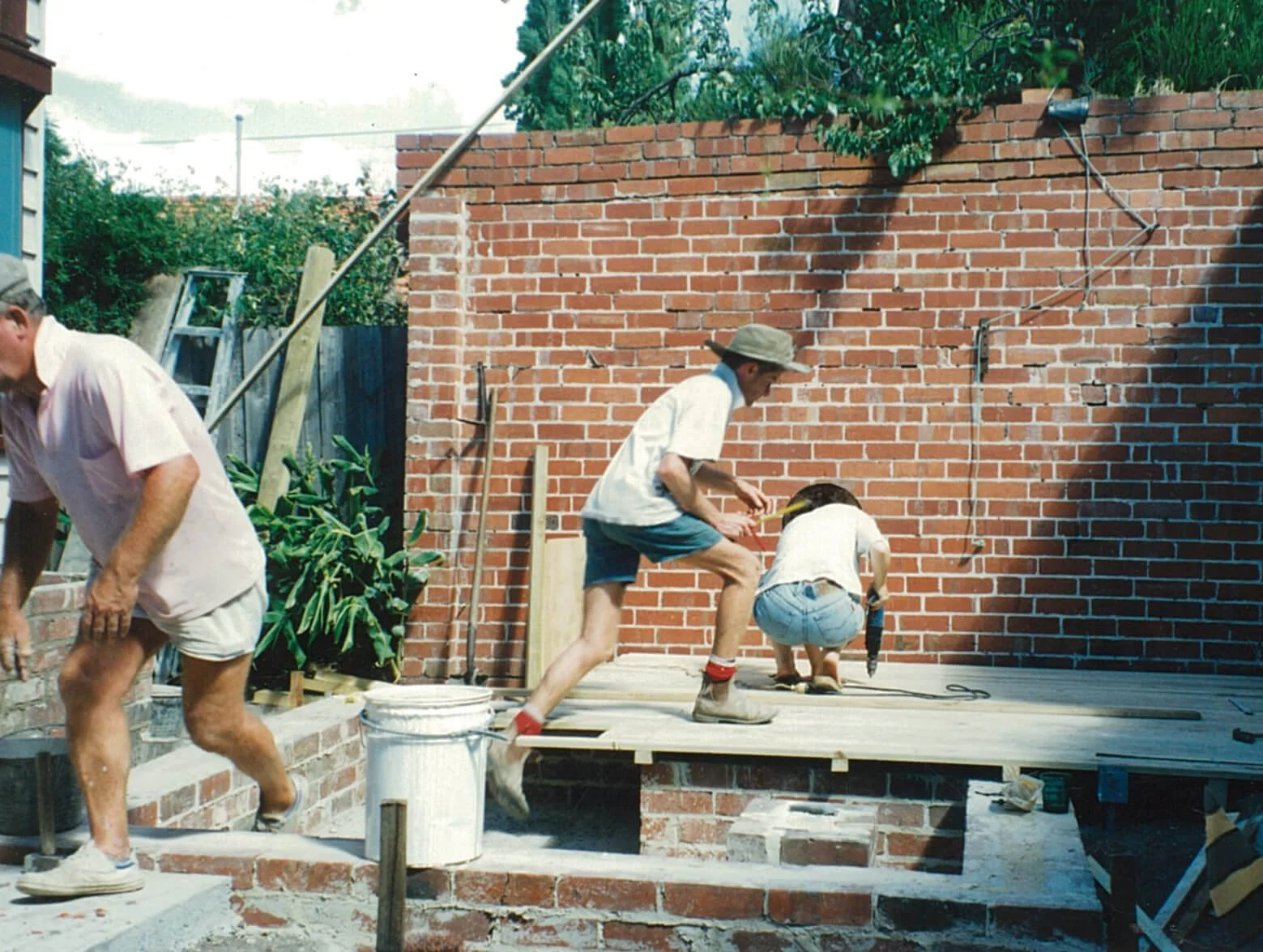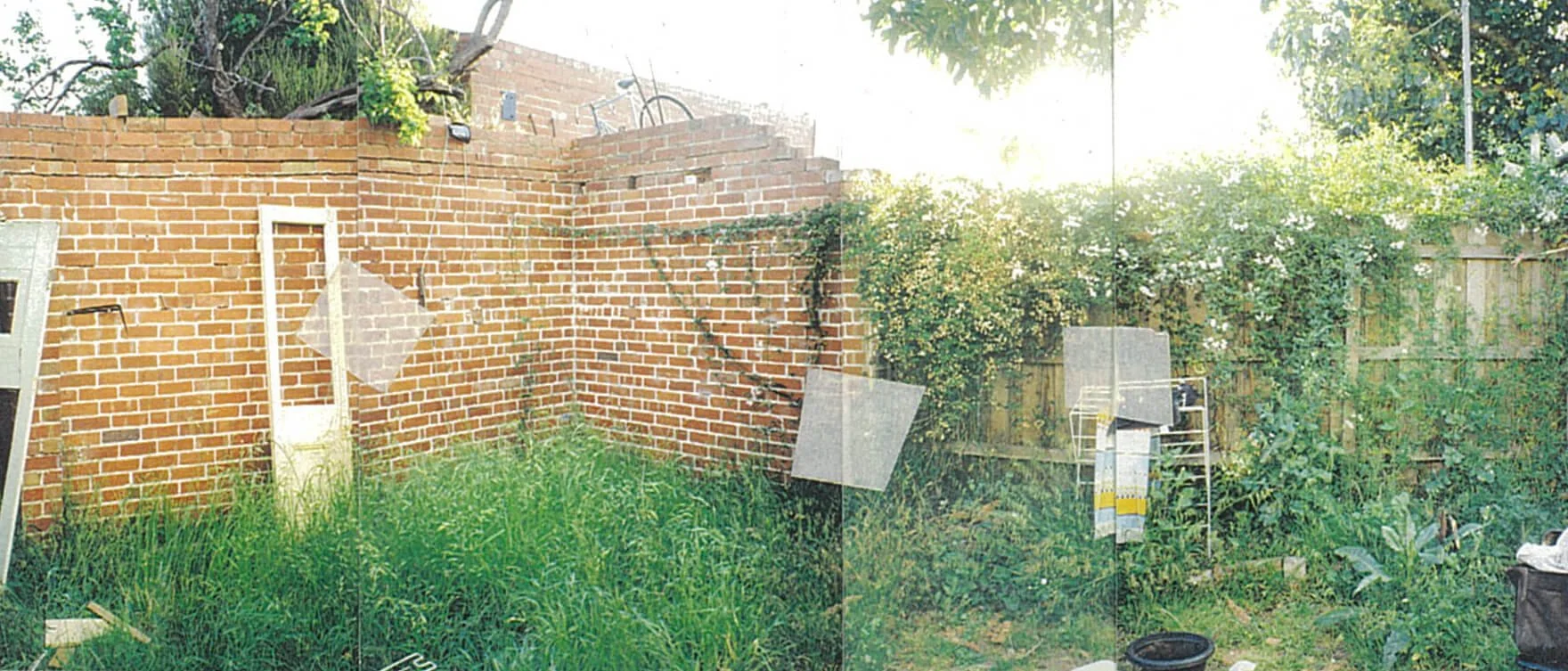 This bungalow on a small lot left only narrow spaces to the rear and side of the house. The principal design move was to push the timber deck to the boundary, against the residual garage walls that now frame the deck.